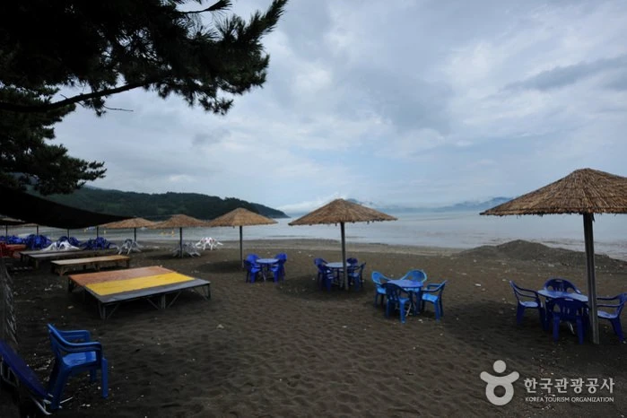 여수엑스포역에서 해안도로를 타고 북쪽으로 3km쯤 떨어진 곳에 위치해 있어서 교통이 편리하다. 길이 540m, 폭 25m 정도의 백사장과 평균수온 25℃로 따뜻해서 해수욕장으로는 최적지이다. 특히, 이곳의 백사장에 깔린 검은모래는 원적외선의 방사열이 높아서 모세 혈관을 확장시켜 혈액순환을 돕고 땀의 분비를 촉진시켜 준다고 한다.
